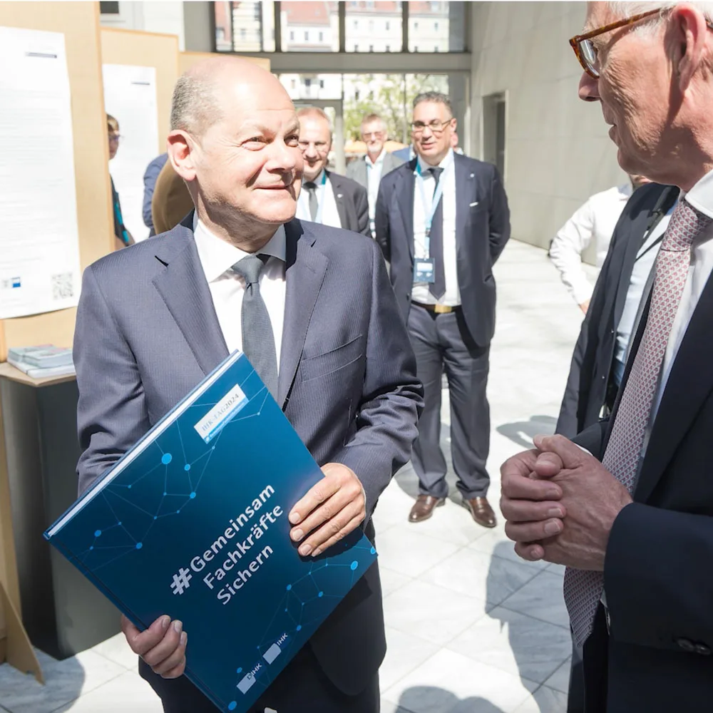 Die Deutsche Industrie- und Handelskammer ist die Vertretung aller IHKs. Im Zuge einer Ausschreibung haben wir uns als Agentur durchgesetzt und das Erscheinungsbild des IHK-Tag 2024 entwickelt. Unter dem Motto #GemeinsamFachkräfteSichern waren wir für alle visuellen Touchpoints des zweitägigen Events verantwortlich und produzierten diese mit unseren Partnern. Somit sorgten wir plattformübergreifend für ein konsistentes Erscheinungsbild und eine gelungene Veranstaltung. Teil davon war auch die Produktion eines Buches für Gäste und die Politik, sowie die Inszenierung einer Ausstellung mit über 100 Plakaten.